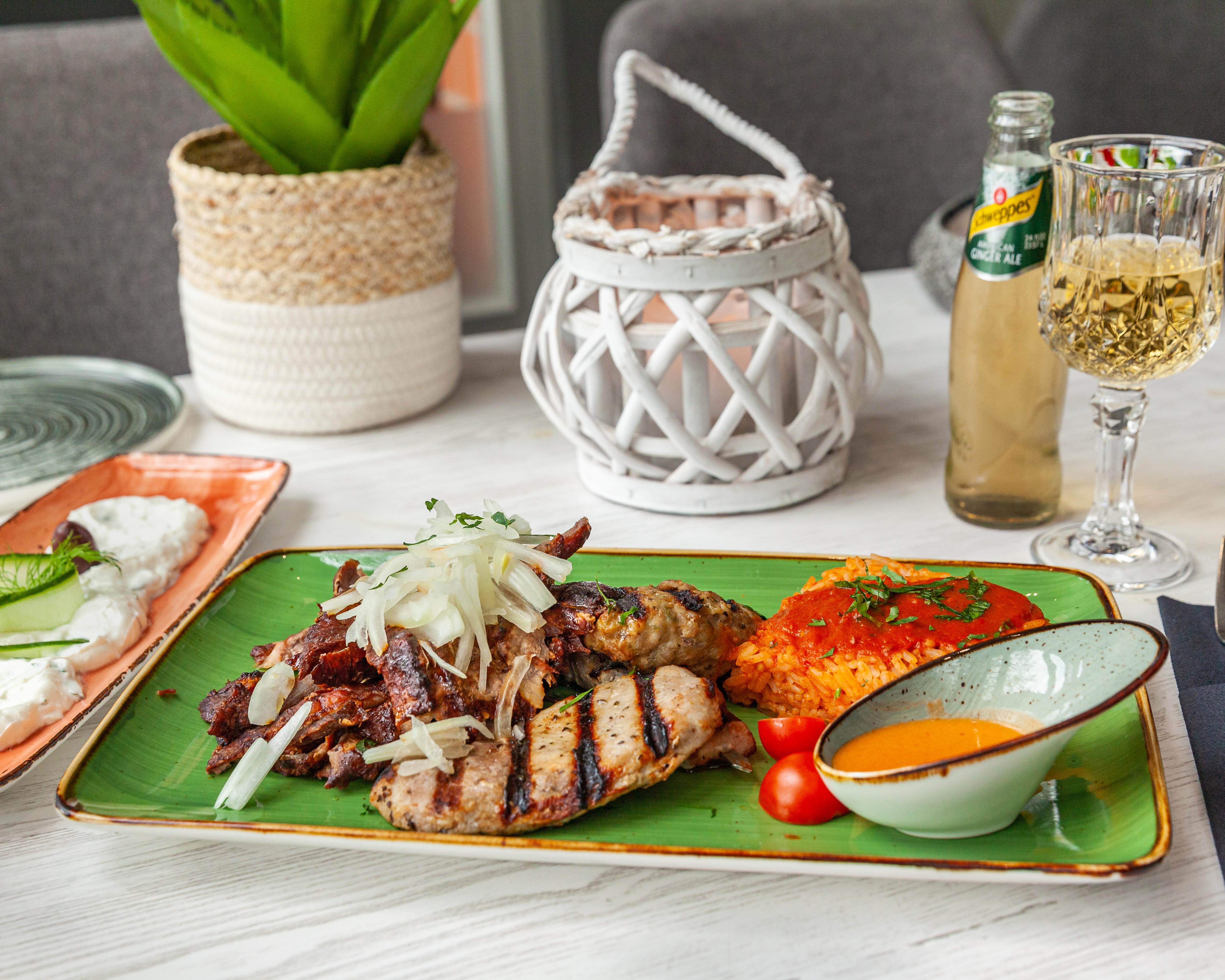 Bifteki mit griechischem Tomatenreis und Metaxasoße & Feta in Mandelkruste